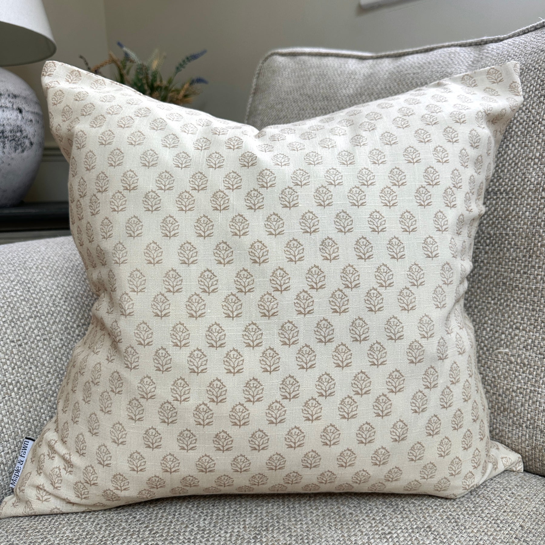 Crafted from a 50% linen and 50% cotton blend, it features a concealed zip fastening and is finished with our signature Maple & Fawn label.