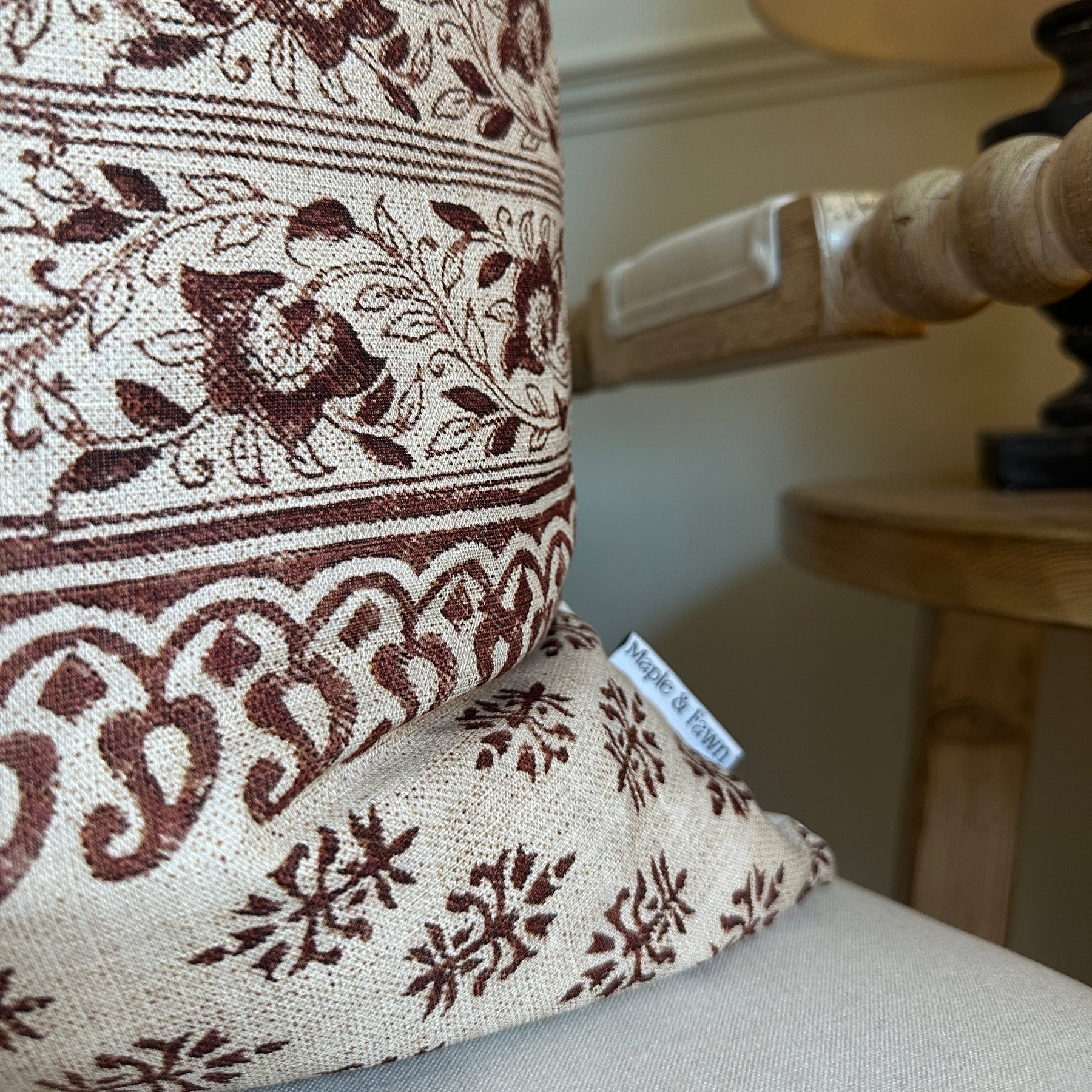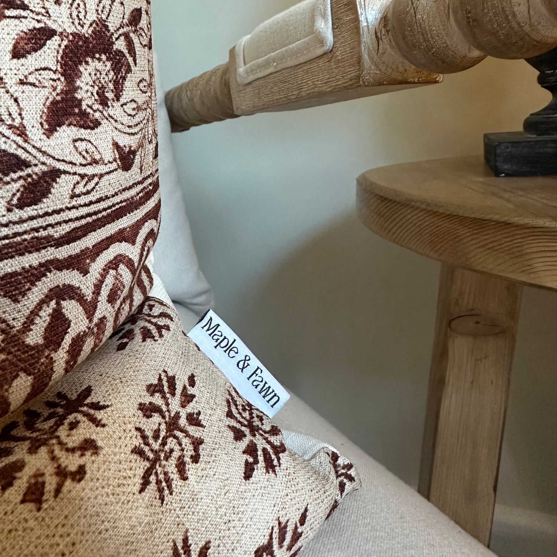 50% Linen & 50% Cotton cushion cover with a concealed zip fastening, finished with our signature Maple & Fawn tag.