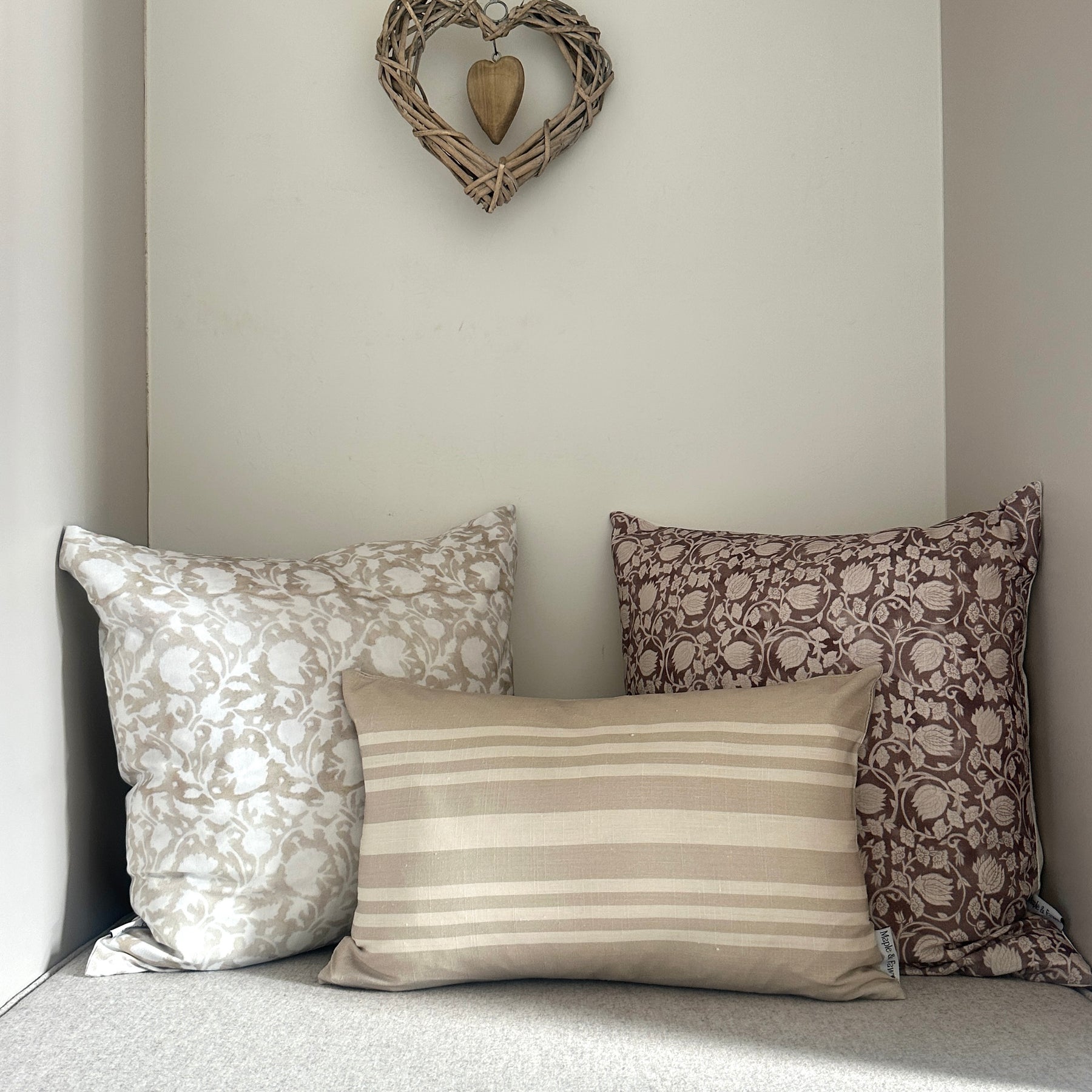 If you chose to add an insert they will be a 55 x 55cm & 30 x 55cm duck feather fillings. Our luxury feather inners are 100% European duck feather enclosed in a cambric case, ensuring the feathers don’t smell or escape from the pad. The ideal option if you are wanting to give your cushions a luxurious feel and the famous ‘chop’.