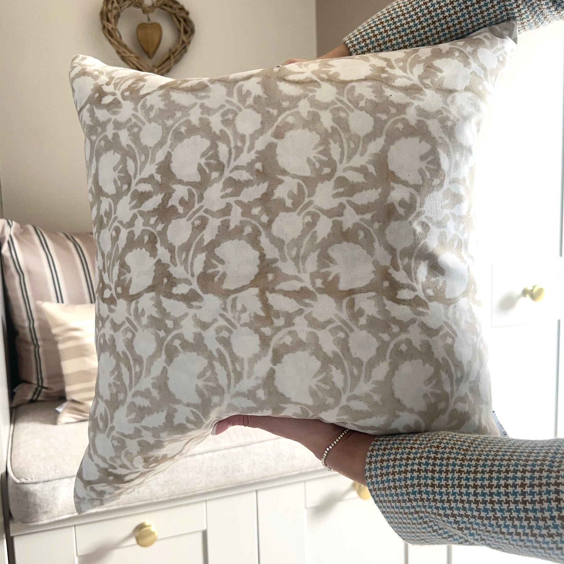 One 50 x 50cm 50% organic cotton & 50% organic linen printed cushion cover with concealed zip opening.